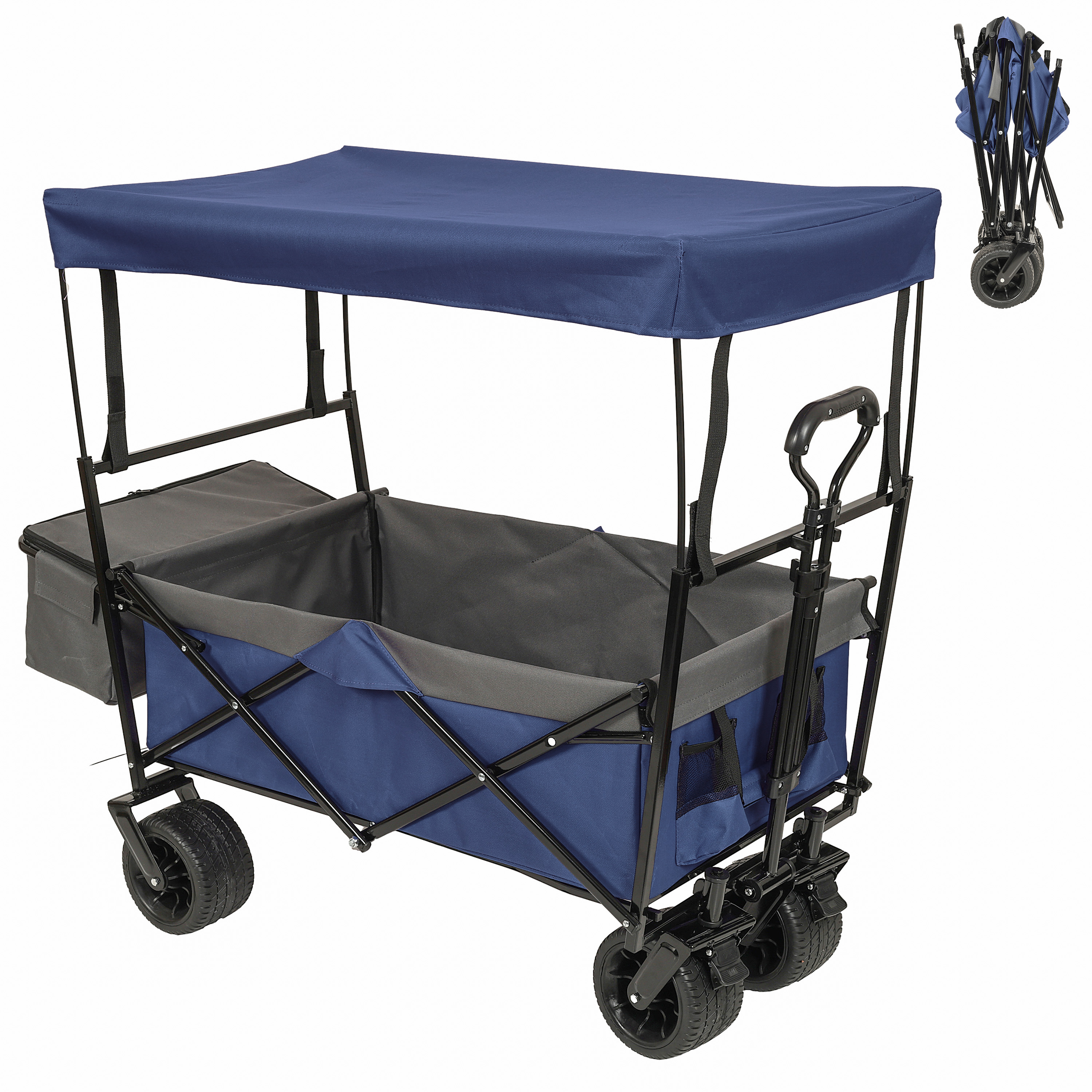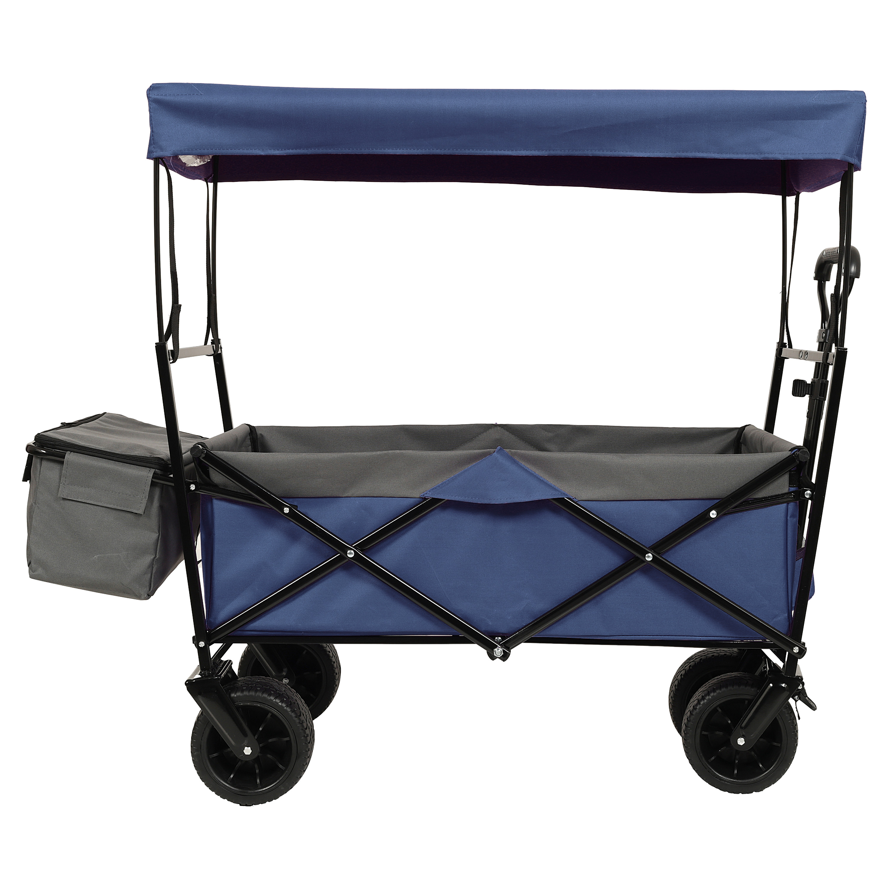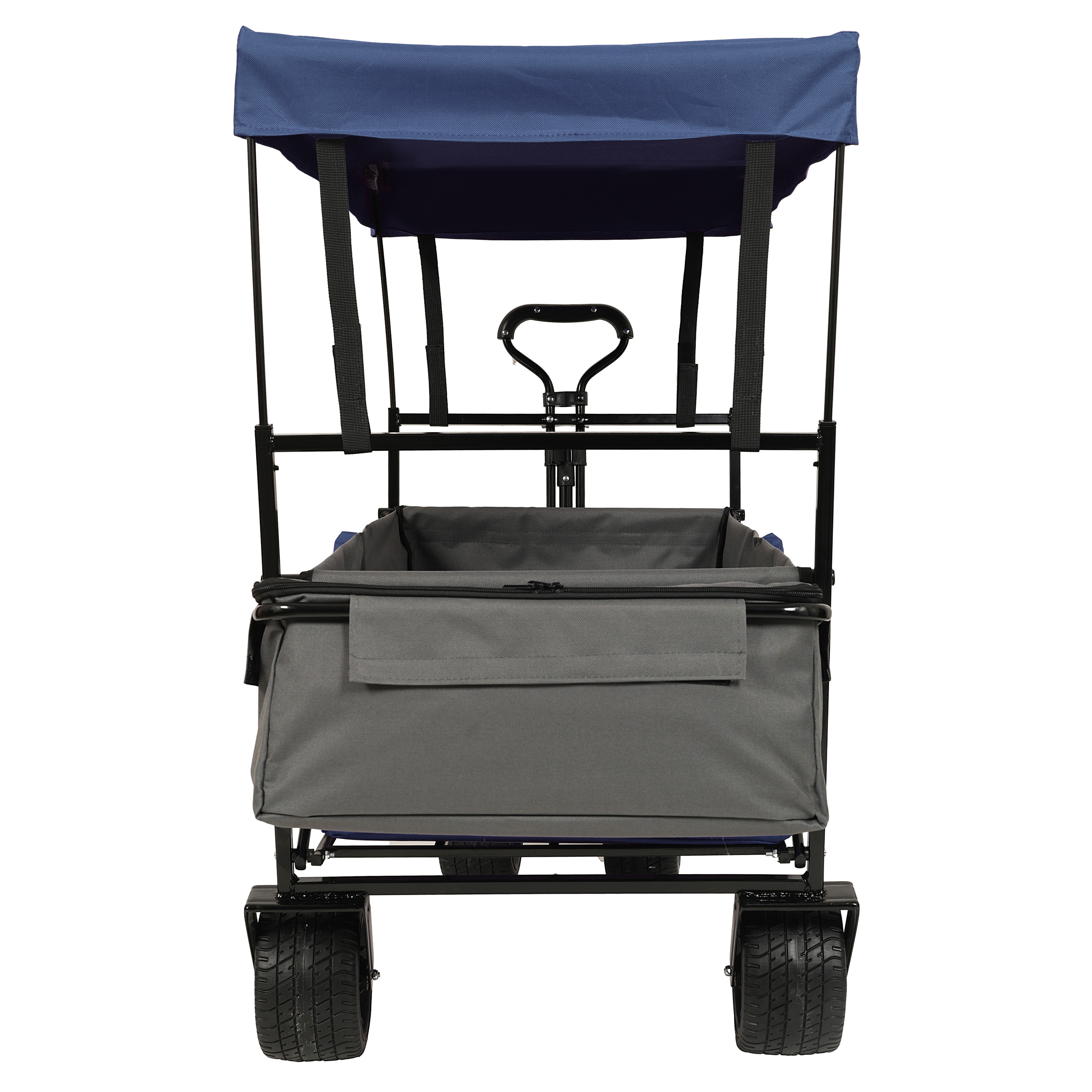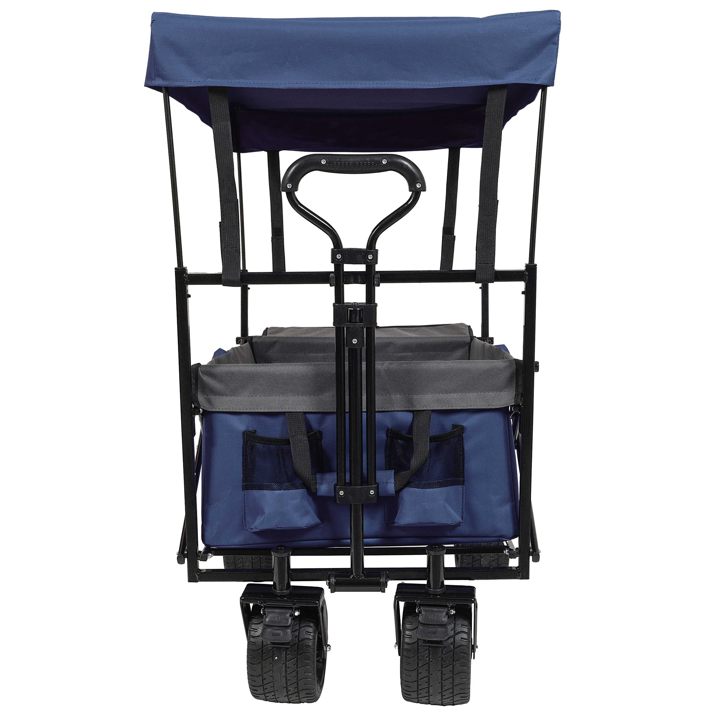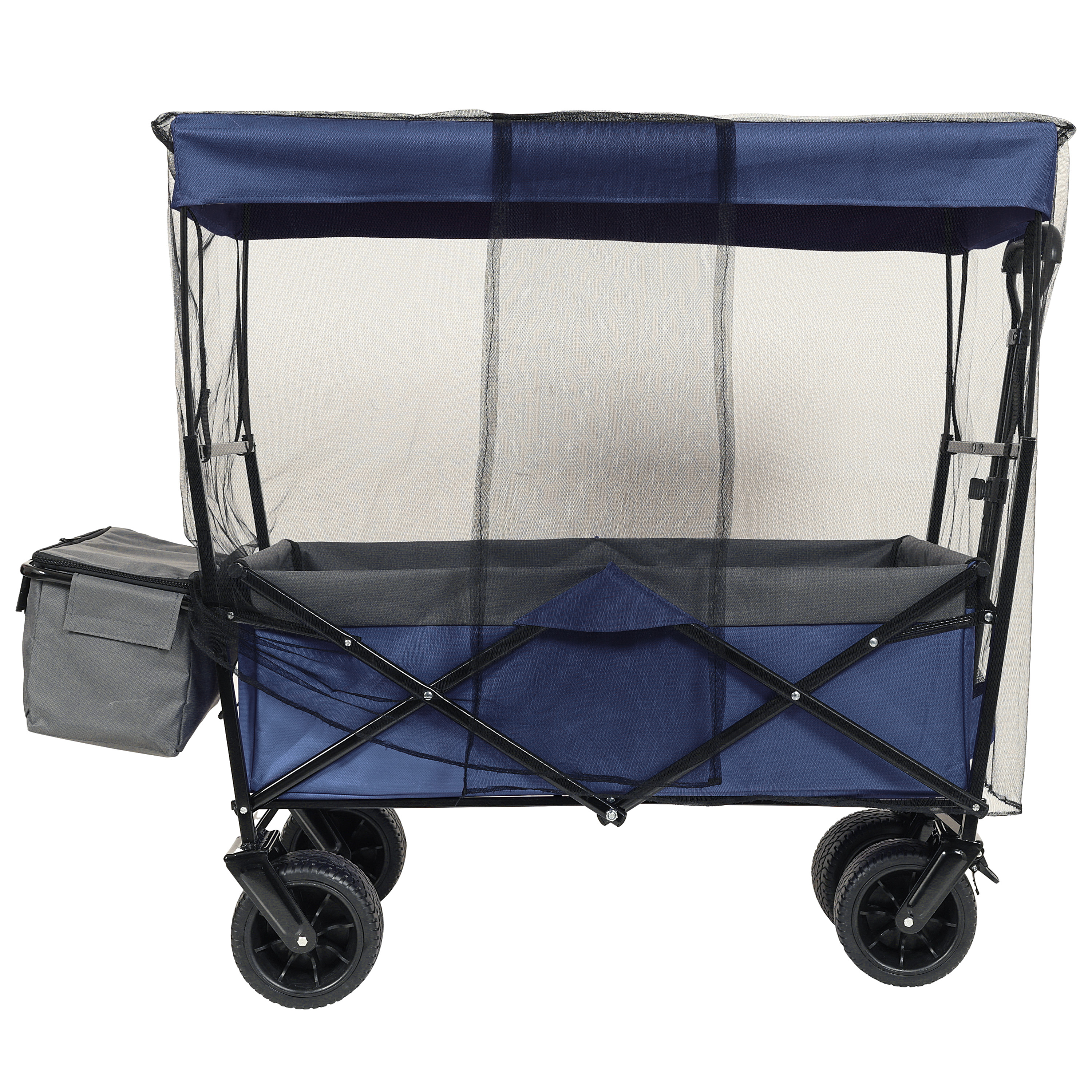 480Lbs Collapsible Wagon With Canopy Wagon Stroller With 7 All- Terrain Wheels Lightweight Foldable Wagon Large Capacity For Camping Shopping Sports And Garden Use Dark Blue With Mosquito Net